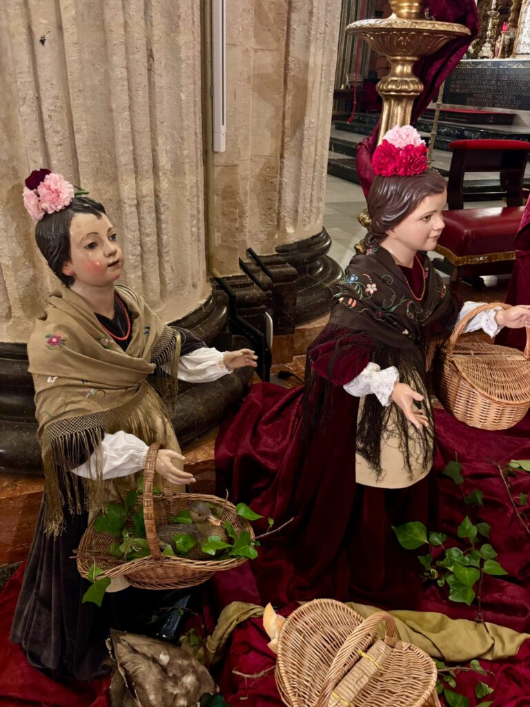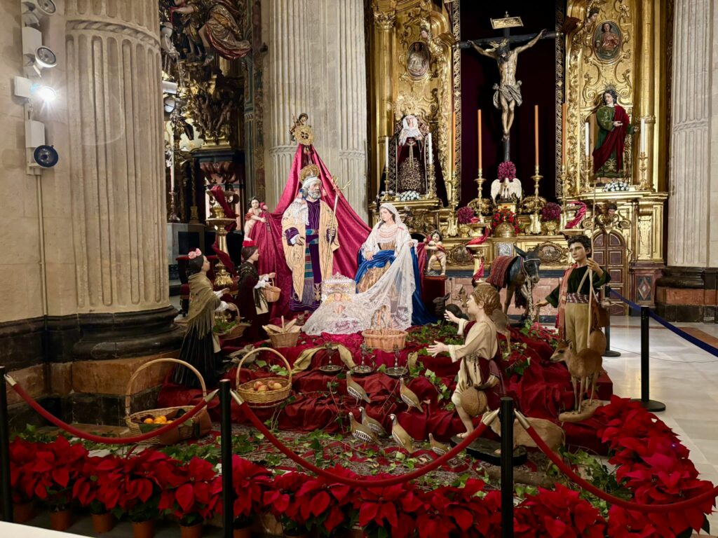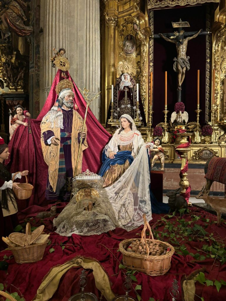 Un año más nuestra Hermandad celebra la Natividad del Señor con la instalación del tradicional Nacimiento a los pies de Nuestros Amantísimos Titulares en la Iglesia Colegial del Divino Salvador. Este martes, 9 de diciembre, durante la Misa de Hermandad, ha quedado bendecido el Nacimiento, con figuras a tamaño natural que forman parte del conjunto escultórico del paso de la Sagrada Entrada en Jerusalén.